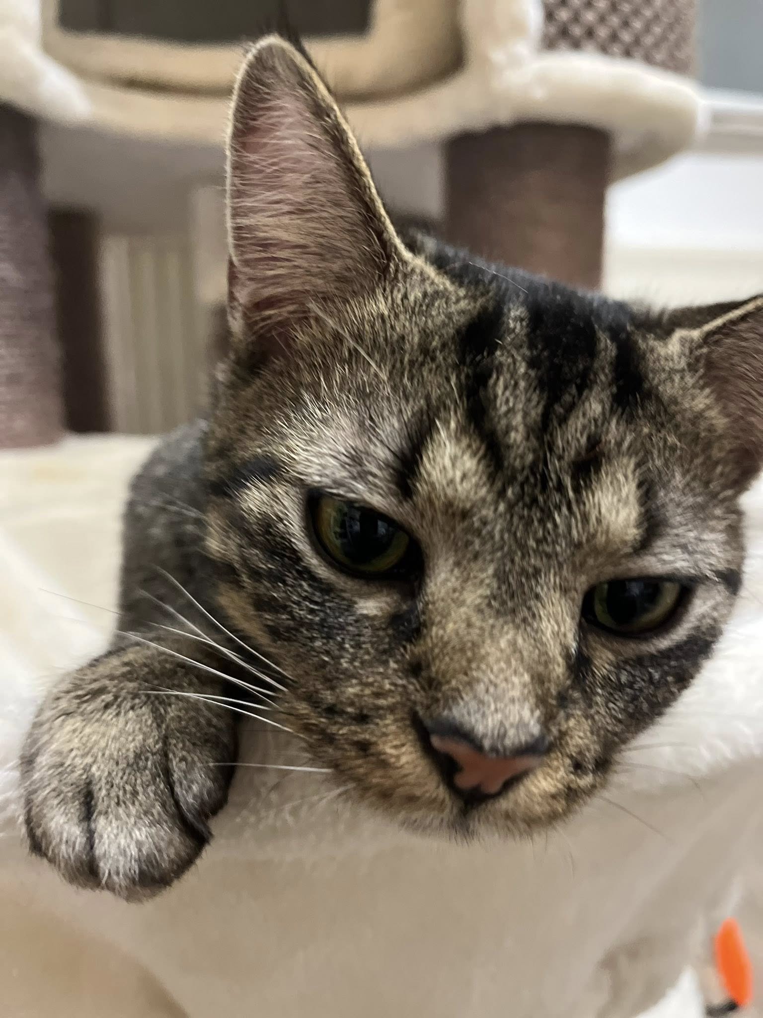 Unsere grau getigerte Power-Prinzessin Kelly wartet immer noch darauf, dass jemand sagt: „Ja, genau DIE will ich!“